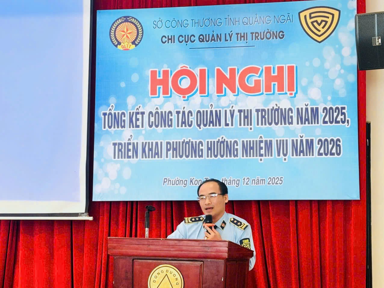 Ngày 30/12/2025, Chi cục Quản lý thị trường tỉnh Quảng Ngãi tổ chức Hội nghị tổng kết công tác năm 2025 và triển khai nhiệm vụ năm 2026. Hội nghị là dịp để tập thể Chi cục nhìn lại chặng đường một năm thực hiện nhiệm vụ, đánh giá những kết quả đạt được, chỉ rõ những tồn tại, hạn chế, đồng thời xác định phương hướng, giải pháp trọng tâm trong thời gian tới.