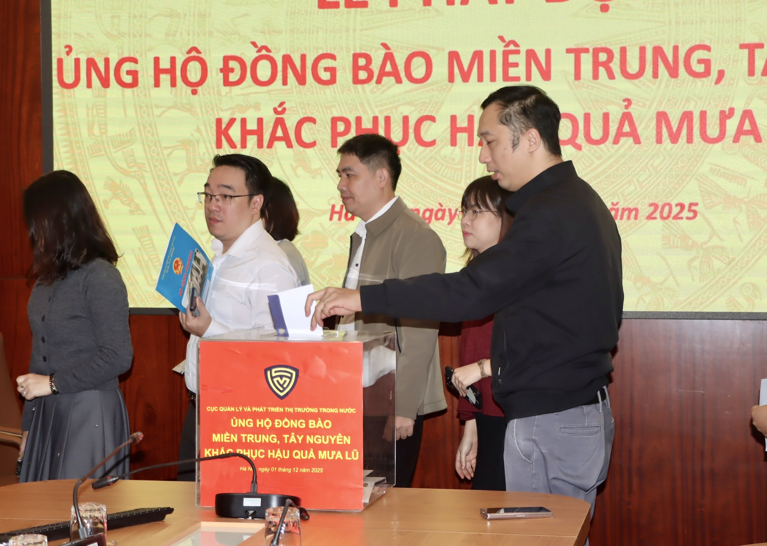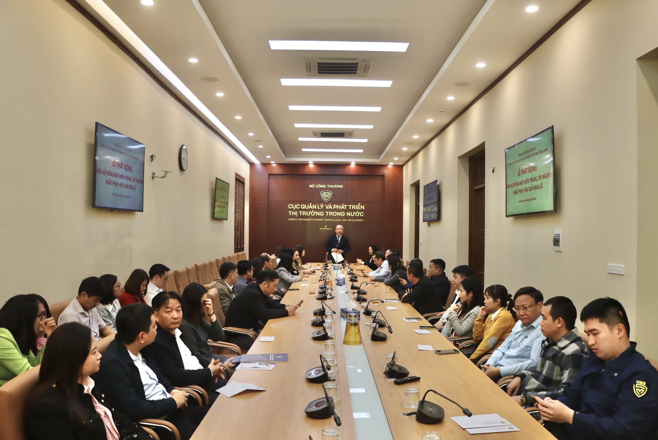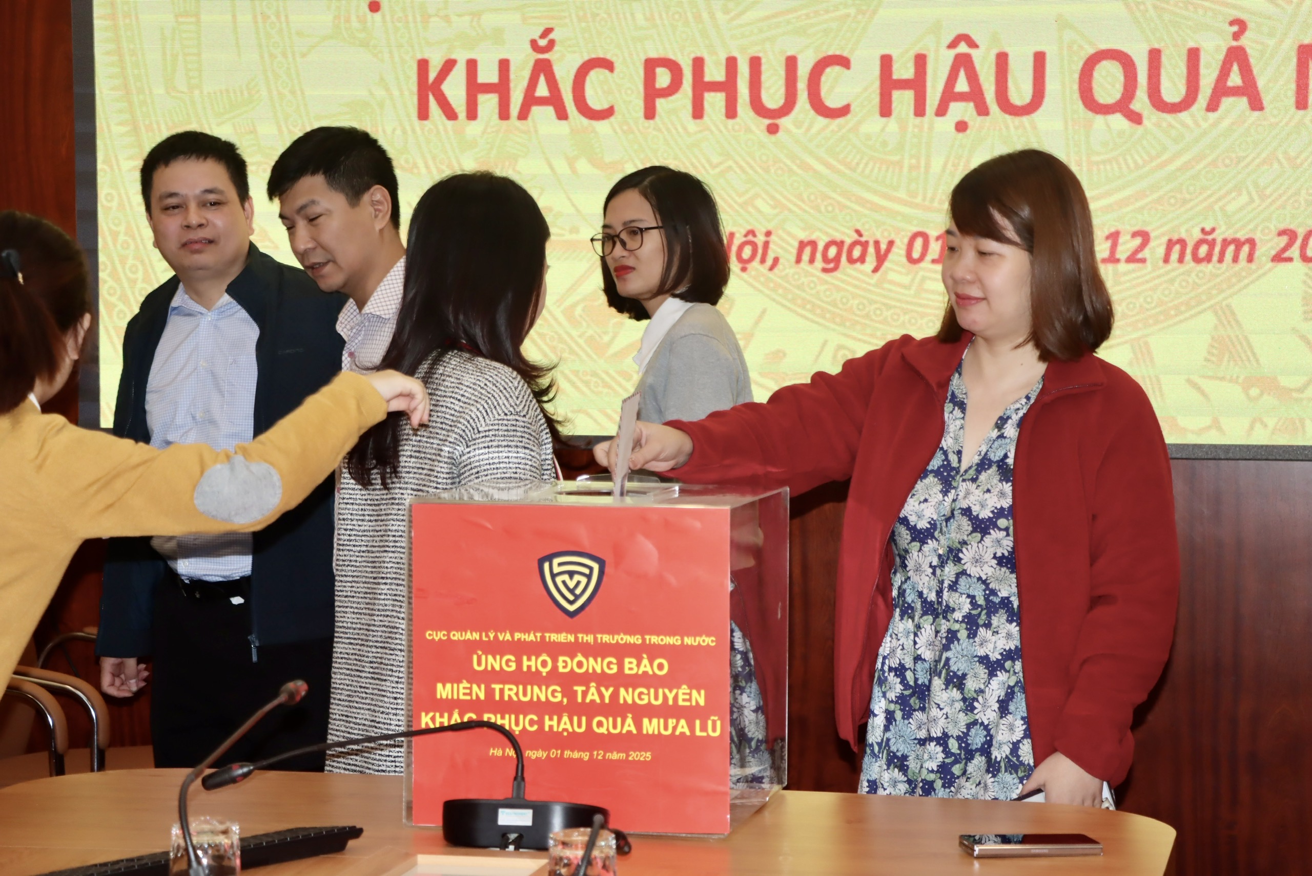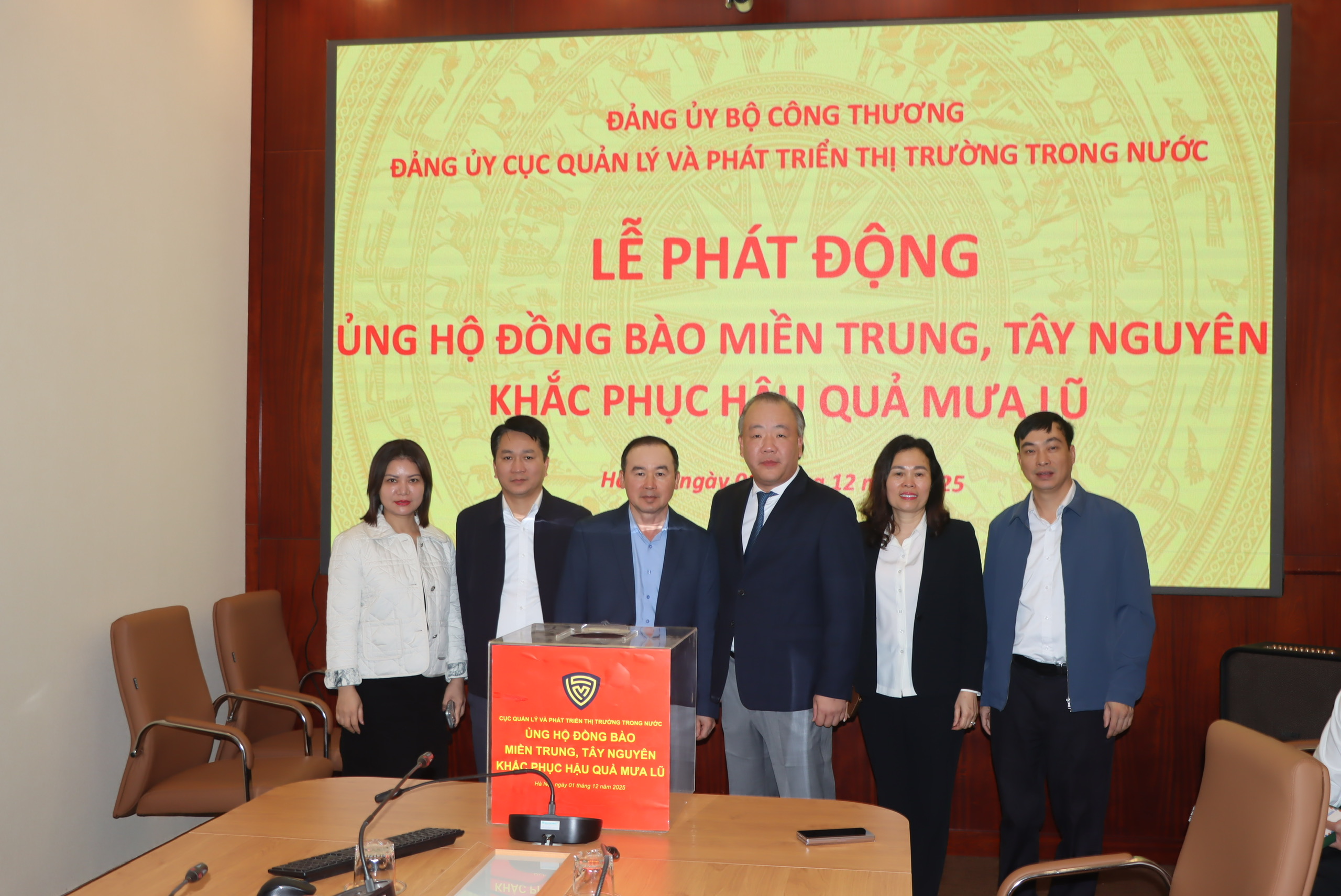 Trong những ngày qua, đồng bào các tỉnh khu vực miền Trung, Tây Nguyên đang phải oằn mình chống chọi với đợt mưa lũ đặc biệt lớn, gây thiệt hại nặng nề về người và tài sản, nhiều hộ gia đình, cá nhân cần được hỗ trợ, giúp đỡ. Với tinh thần “tương thân tương ái”, “lá lành đùm lá rách”, sáng 1/12/2025, Cục Quản lý và Phát triển thị trường trong nước đã phát động ủng hộ đồng bào miền trung, Tây Nguyên bị thiệt hại do mưa lũ gây ra. Cục trưởng Trần Hữu Linh chủ trì.